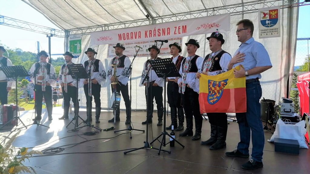 „Letos jsem účastníky festivalu pozdravil jménem Společnosti pro Moravu a Slezsko a iniciativy Morava TEĎ a popřál jsem slovenskému sdružení Morava krásna zem k 10 výročí založení. Navíc jsem poreferoval o výročí moravské vlajky, která 14. 8. 2023 slaví 175 let od svého vzniku. Poté Mužáci Moravia slavnostně zazpívali moravskou hymnu. Moravská vlajka byla při hymně symbolicky vystavena na pódiu,“ referoval Laďa Novotný.