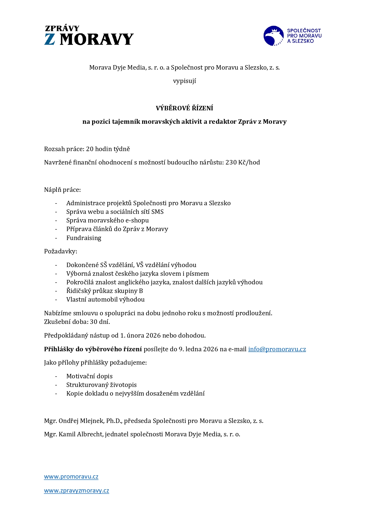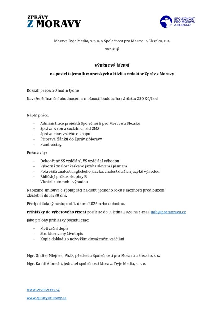 Sdílet Facebook Twitter LinkedIn Pinterest Email Chcete pracovat pro Moravu a splňujete požadavky? Neváhejte se obrátit na níže uvedený kontakt.