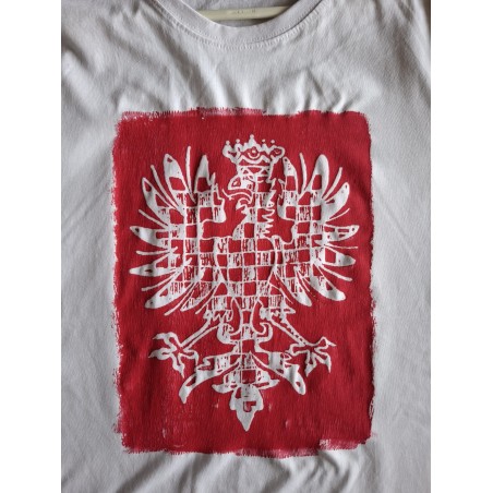 Výrazné červené tričko s motivem moravské orlice v originálním „vintage“ provedení. Design motivu vychází z tvorby Jaroslava Válka, uznávaného moravského uměleckého kováře, jehož práce propojuje tradiční řemeslo s moderním výtvarným pojetím.